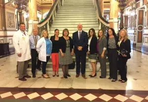 [Representative Hays celebrates passage of the bill with a group from Carle. Note: You can click on the photo to enlarge it.]