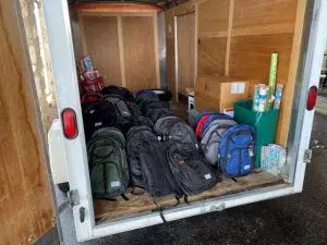 Woodard explained what was in the backpacks that were passed out (under a canopy) at the First Assembly of God Church in Danville…