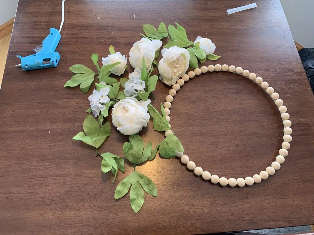 *If you had an empty space on your wooden hoop that did not have the half balls, this is a perfect place to put your flowers.
