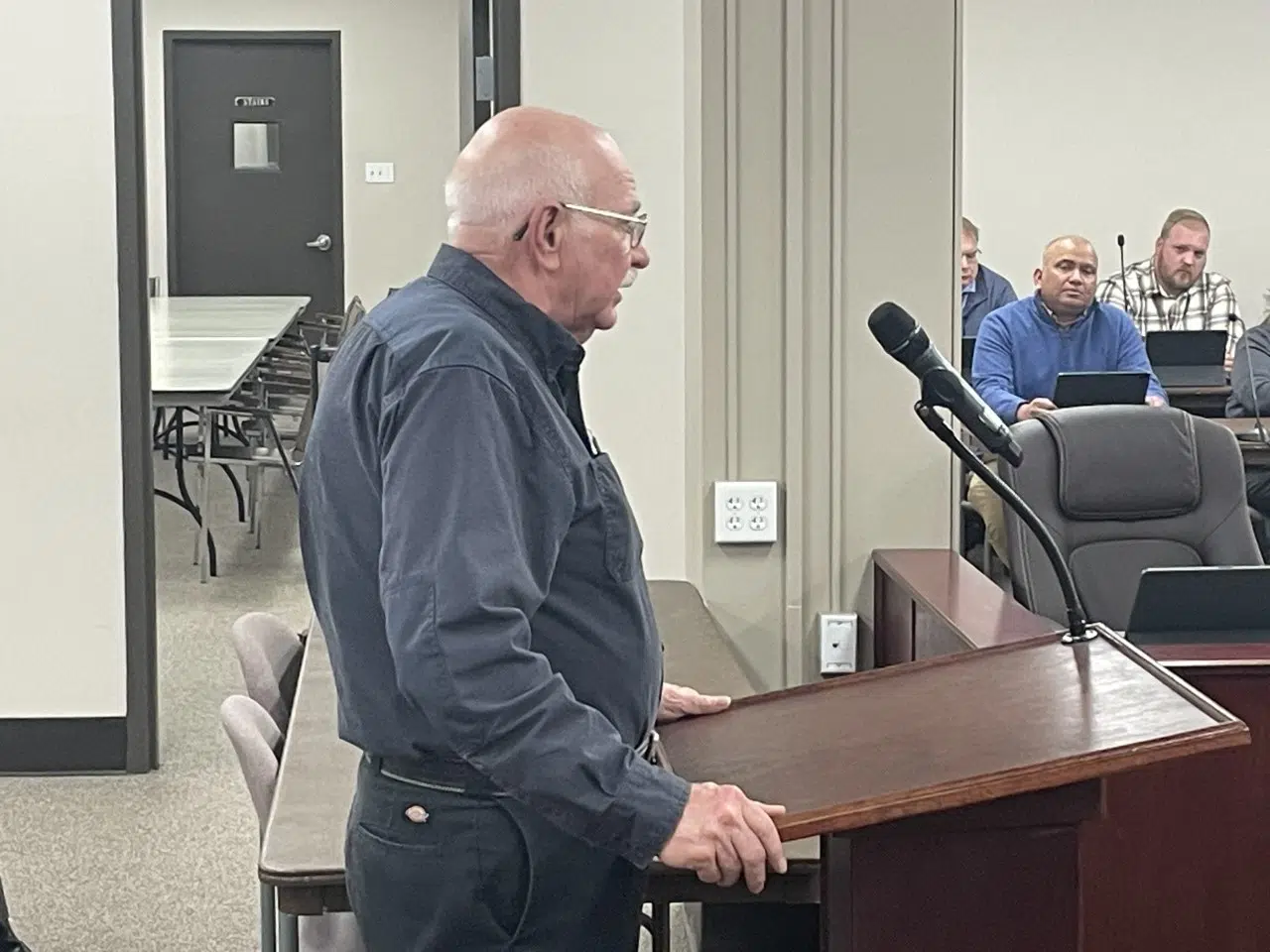 ABOVE: North Gilbert Street resident Dave Sharp addresses the Danville City Council about the need for a new four-way stop on North Gilbert, between Winter and Voorhees Streets, to slow down traffic.