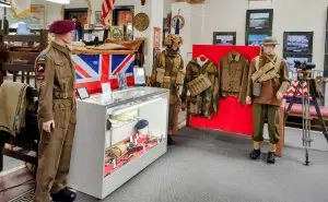 “Our Allied Troops collection has just been expanded with the addition of rare British Paratrooper Uniforms from World War II,” according to Larry Weatherford, Events Coordinator for the Museum. “Along with the uniforms, we have weapons, accoutrements and artifacts to complement the collection. We’re excited that Board Member and Volunteer Ron Bolser was able to acquire this unique collection for our newest exhibit.”