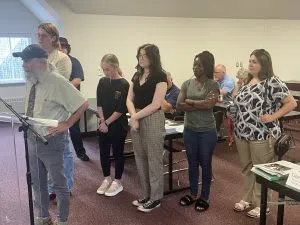 Danville Area Community College Art Department instructor Ronald Scott Johnson, who also serves as a co-advisor for DACC’s Phi Theta Kappa Honor Society, gives a presentation to the Board of Trustees with current Phi Theta Kappa students.