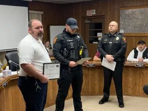 Chief Varvel says Westville Police officers attended over 900 hours of training during 2024. Officer Guerrero was unaware that he was going to be honored during the Westville Village Board meeting. One of the persons he saved was also on hand for the presentation.