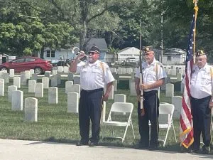 On Thursday, August 14th; the 80th anniversary of World War II’s end when President Truman announced Imperial Japan had surrendered; American Legion Post 210 led the way at the afternoon “Spirit of 45” ceremony at Danville National Cemetery. Post 210 handled the Presentation of Colors, the Rifle Salute, and the playing of Taps. The featured speaker was State Representative and United States Marine Corps Veteran Brandun Schweizer.