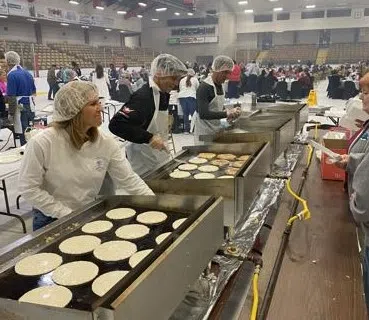 ABOVE: Kiwanis volunteers serving up pancakes for 75 years at the Danville Kiwanis Pancake Day. (photo provided)