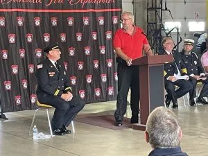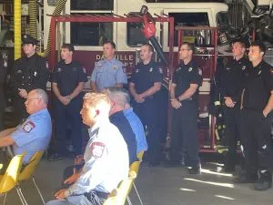 Danville’s Fire Station 3 on Griffin Street was the scene for Wednesday morning’s (Sept 17th) special “walk-out” ceremony for the retiring Captain Neil Yelenick. Before it began, Captain Yelenick admitted that YES, he first wanted to be a firefighter after watching NBC’s “Emergency,” on Saturday nights back in the 70s.