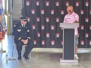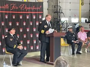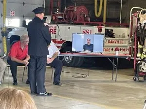 Danville’s Fire Station 3 on Griffin Street was the scene for Wednesday morning’s (Sept 17th) special “walk-out” ceremony for the retiring Captain Neil Yelenick. Before it began, Captain Yelenick admitted that YES, he first wanted to be a firefighter after watching NBC’s “Emergency,” on Saturday nights back in the 70s.