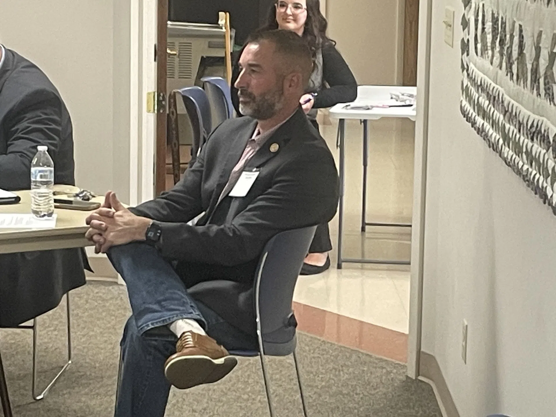 ABOVE: State Rep Brandun Schweizer, in attendance at Wednesday’s “Regional Roundtable” on Workforce Education at Vermilion County Farm Bureau building.