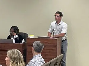 Danville Community Development Administrator Logan Cronk addresses the Danville District 118 School Board.