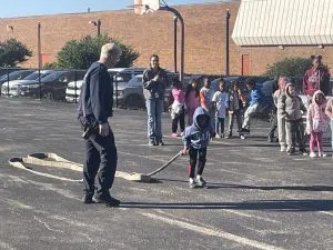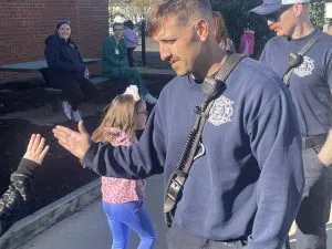 ABOVE: Danville Assistant Fire Chief Jerry Sparks speaks to students outside Liberty Elementary School.