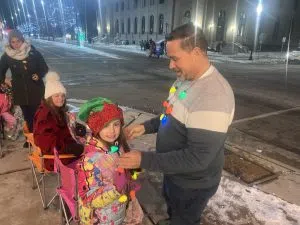 It was a cold Friday night for Downtown Danville’s Night of Lights Parade but crowds of people were already going inside the Fischer for hot cocoa and finding their watching spots along North Vermilion an hour beforehand; including Matt and Danielle from Westville and their three young kids, stationed at the northwest corner of Vermilion and North.