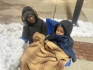 Just on the other side of North Street, there sat Audrey and young Damion keeping warm, in the same spot they watch from every year.