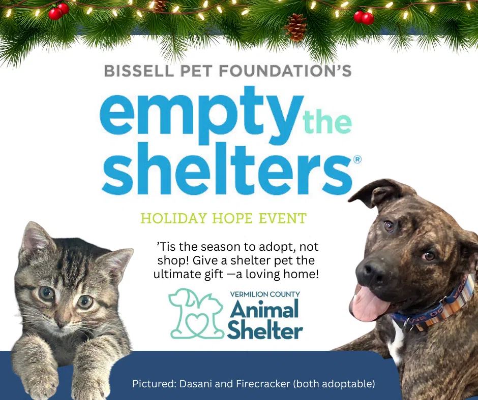 [Danville, IL — 12/4/2025 ] BISSELL Pet Foundation, a national animal welfare organization dedicated to ending pet homelessness, is bringing holiday hope to homeless pets across the country with its Empty the Shelters® – Holiday Hope reduced-fee adoption event, taking place December 1–15, 2025.