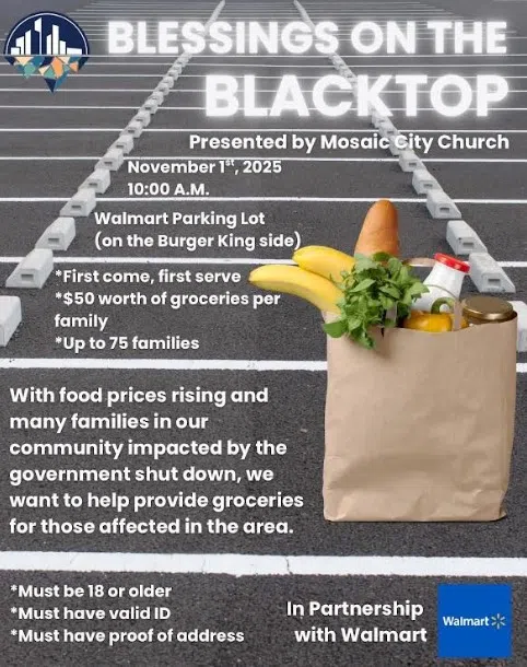 With the rising costs of food, along with families being impacted by the government shut down, Danville's Mosaic City Church and Danville's Walmart are combining efforts for BLESSINGS ON THE BLACKTOP;...