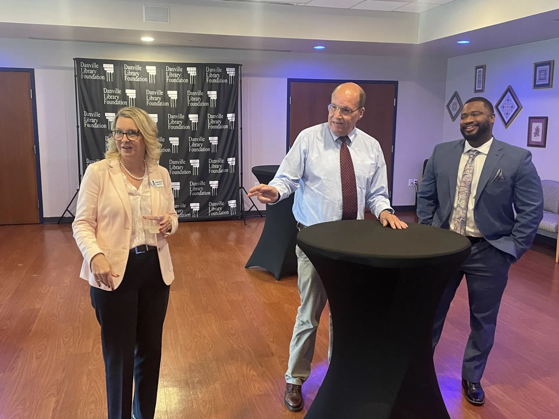 ABOVE: Danville Public Library Foundation's Executive Director Natalie Duncan, Danville Public Library's Board president Mark Denman, and new Danville Public Library Director Christopher Leggins. &nbs...