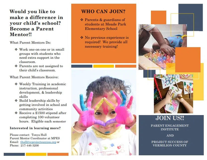 THE FOLLOWING IS A PROJECT SUCCESS OF VERMILION COUNTY RELEASE Project Success of Vermilion County is excited to announce that we have been awarded funding to start a Parent Mentor Program at M...