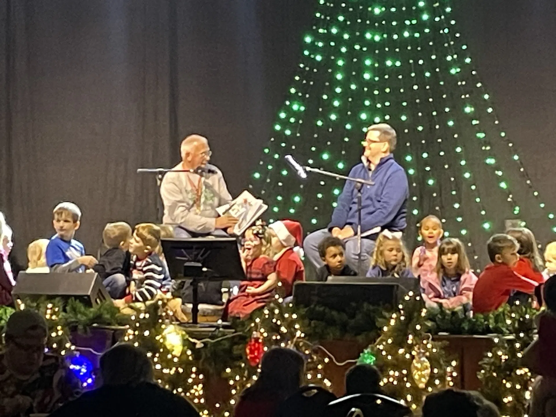 ABOVE: Judge Mark Goodwin and D102's Tommy B read to children during STORYTIME, Monday night Nov 13th up on stage during FESTIVAL OF TREES at the David S. Palmer Arena. Festival of Trees continues unt...