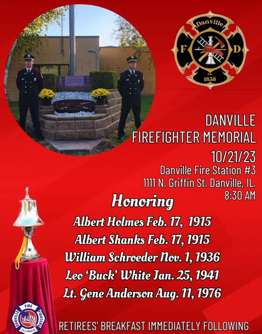 The annual Danville Firefighter Memorial Service is scheduled for 8:30 AM; Saturday, October 21st; at Fire Station #3, located at 1111 N. Griffin Street in Danville. Those honored for sacrificing thei...