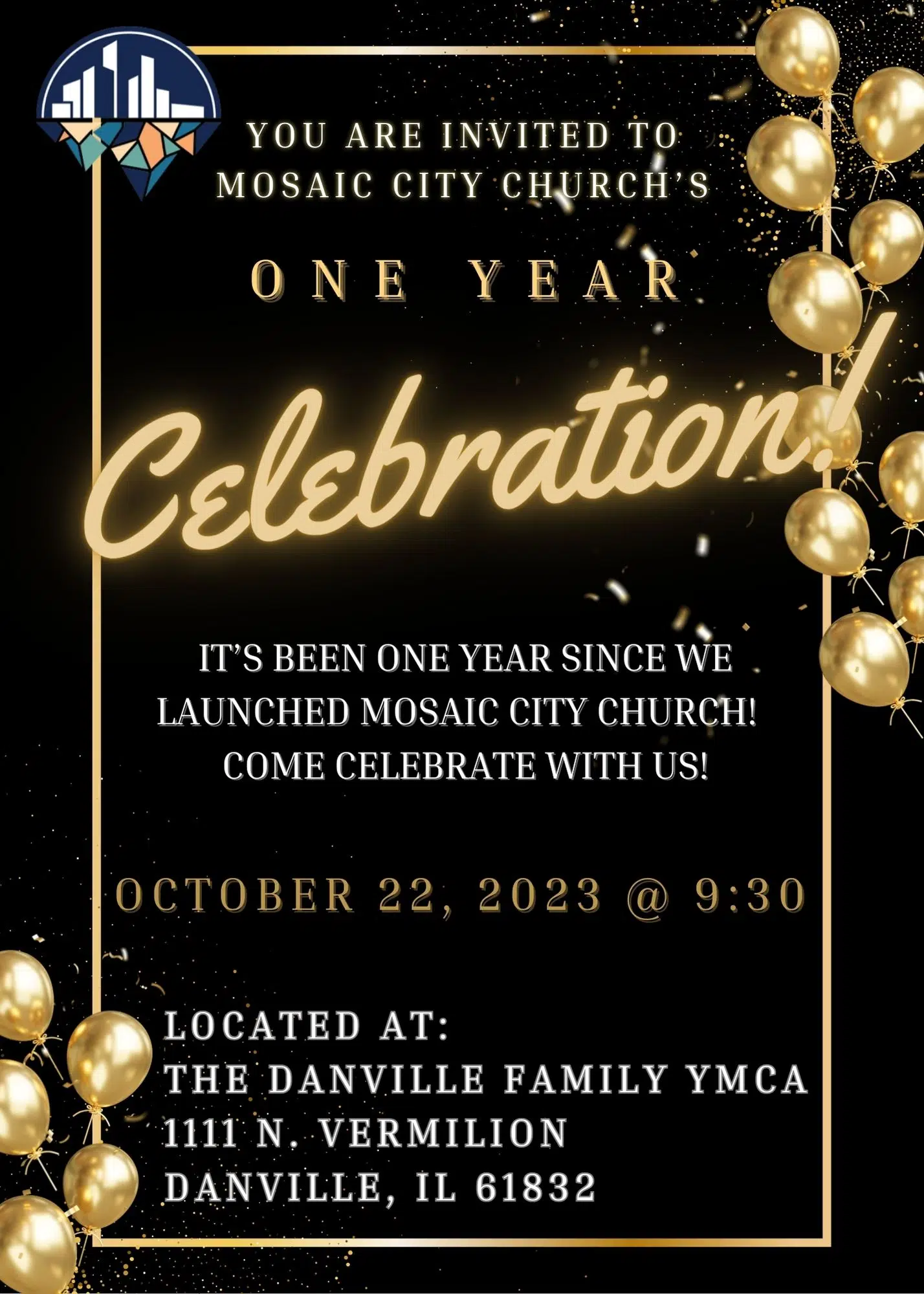 The Mosaic City Church of Danville will be having a one year celebration this Sunday, October 22nd; at their Danville Family YMCA worshiping location. Pastor LeStan Hoskins says, it's been great to do...