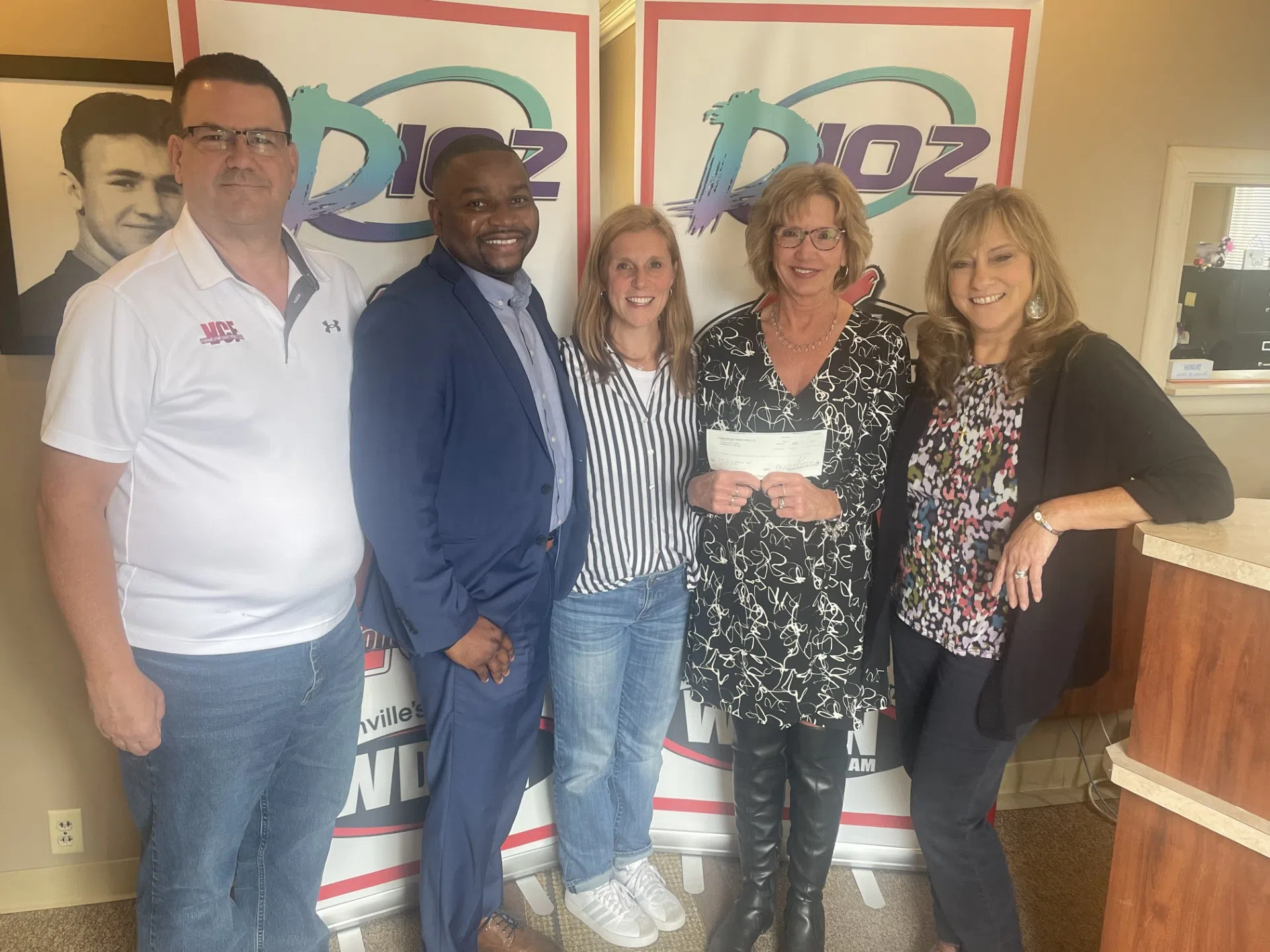 ABOVE: D102 "The Big Show" host Tommy B, United Way of Danville Area Board Member and Campaign Co-Chair Reggie Warfield, United Way of Danville Area CEO Angie Lazzell, Campaign Co-Chair Kate Cox, and ...