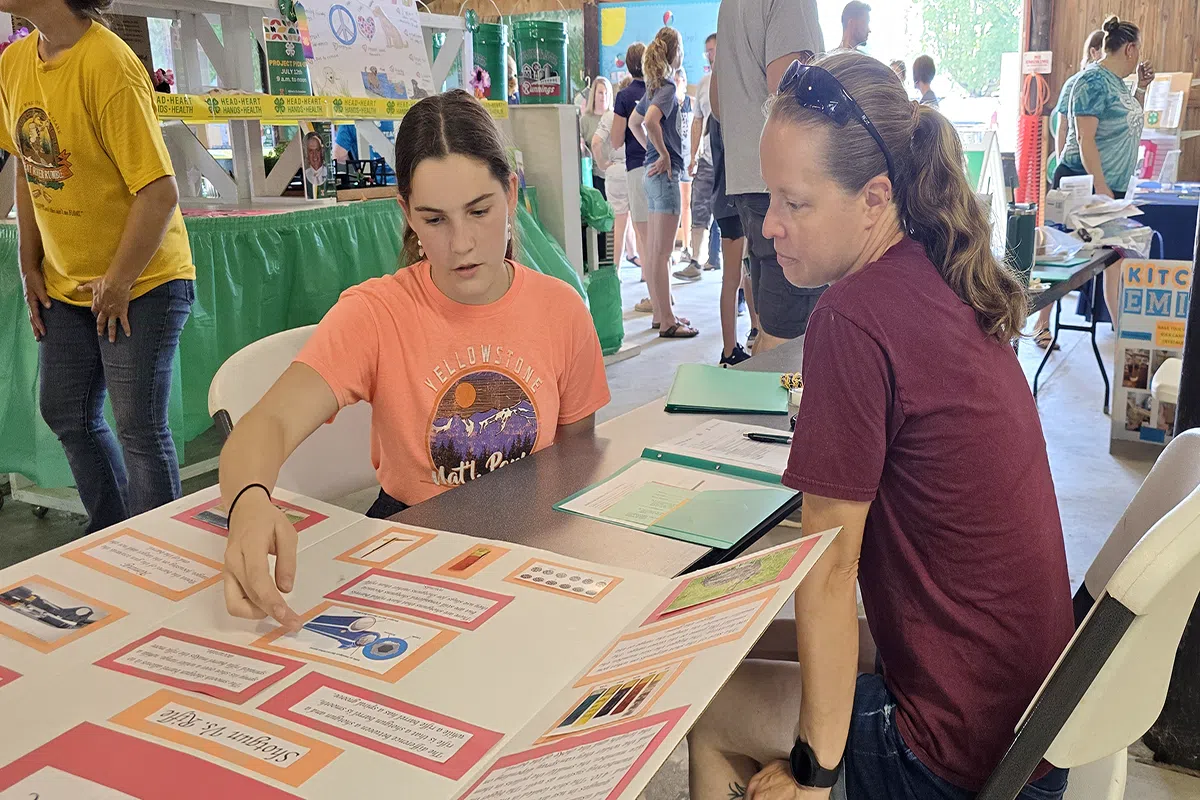 THE FOLLOWING IS A U OF I EXTENSION RELEASE ABOVE: : A 4-H'er presents her project to a judge at the Georgetown Fair on July 5, 2025. GEORGETOWN, Ill - 4-H youth demonstrated their hard ...