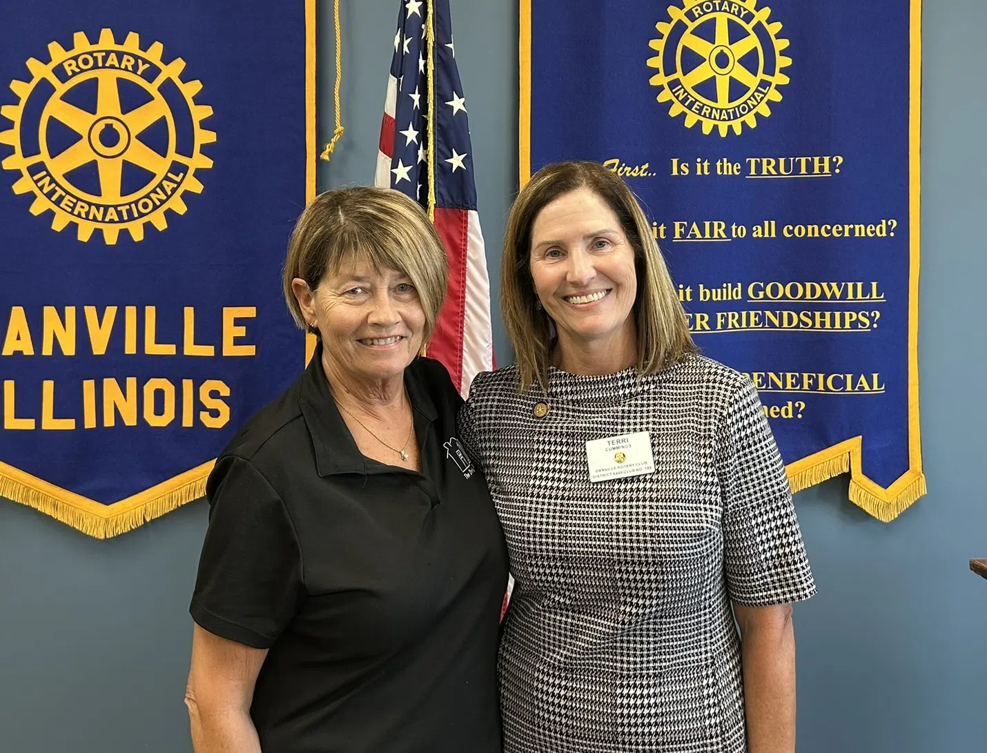 THE FOLLOWING IS A DANVILLE NOON ROTARY RELEASE ABOVE: Nancy O'Kane and Rotary President Terri Cummings Danville Noon Rotary heard from Nancy O'Kane, Director of The Dwelling Place Day C...