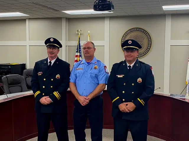 Three veteran Danville firefighters have been promoted to new command positions. Justin Watt, who starts his 25th year on the Danville Fire Department on Friday, was sworn-in Wednesday as Assistant Ch...