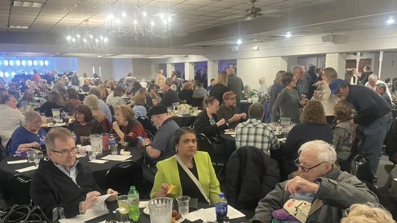 As the auction was about to begin at 7 PM, emcee Tom Wagner and auctioneer Paul Sermersheim made the annual walk towards the state. Sermersheim says the timing for this event is always just right.